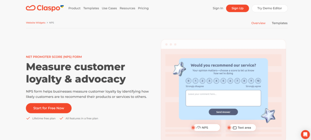 Claspo is a Website CRO widget platform that helps ecommerce teams collect customer feedback and improve on-site conversion with customizable widgets. You can launch NPS/CSAT/CES surveys using ready-to-use popup templates, without relying on designers or developers.