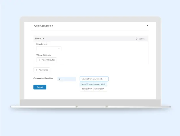 Also, you can define your goal conversion and set a deadline for tracking conversions for any event. It will help you set a predefined time till when the conversions will be tracked after which the tracking will stop automatically.