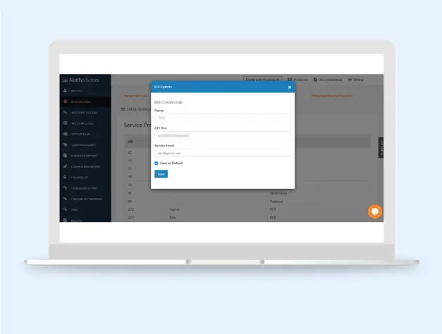 NotifyVisitors eases up the whole process of creating, scheduling, and tracking these email campaigns by choosing the service providers from the dashboard. You can choose the service provider and save it as default from the dashboard itself. Before that, the service providers must be integrated with the NotifyVisitors.