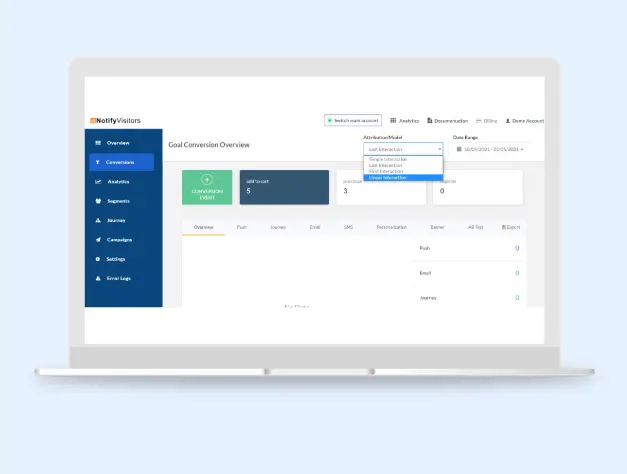 NotifyVisitors enables you to track revenues and conversions on the basis of different attribution models. In each model, you can give credit to the channel/channels through which the user has interacted. This way you can map out the conversions and revenues.