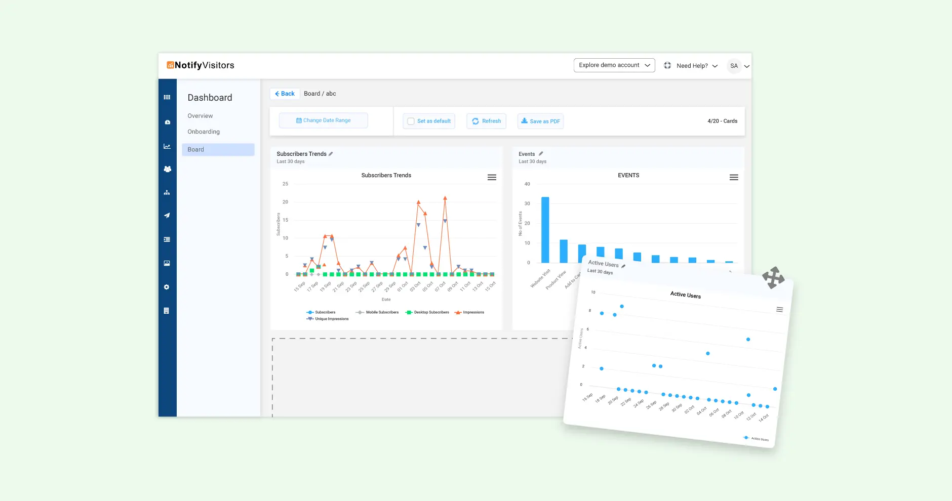 As the name suggests, this feature allows you to create custom dashboards personalized to your needs. Using this, you can pin cards from various sources into one interface, making it easier to track performance of multiple campaigns.