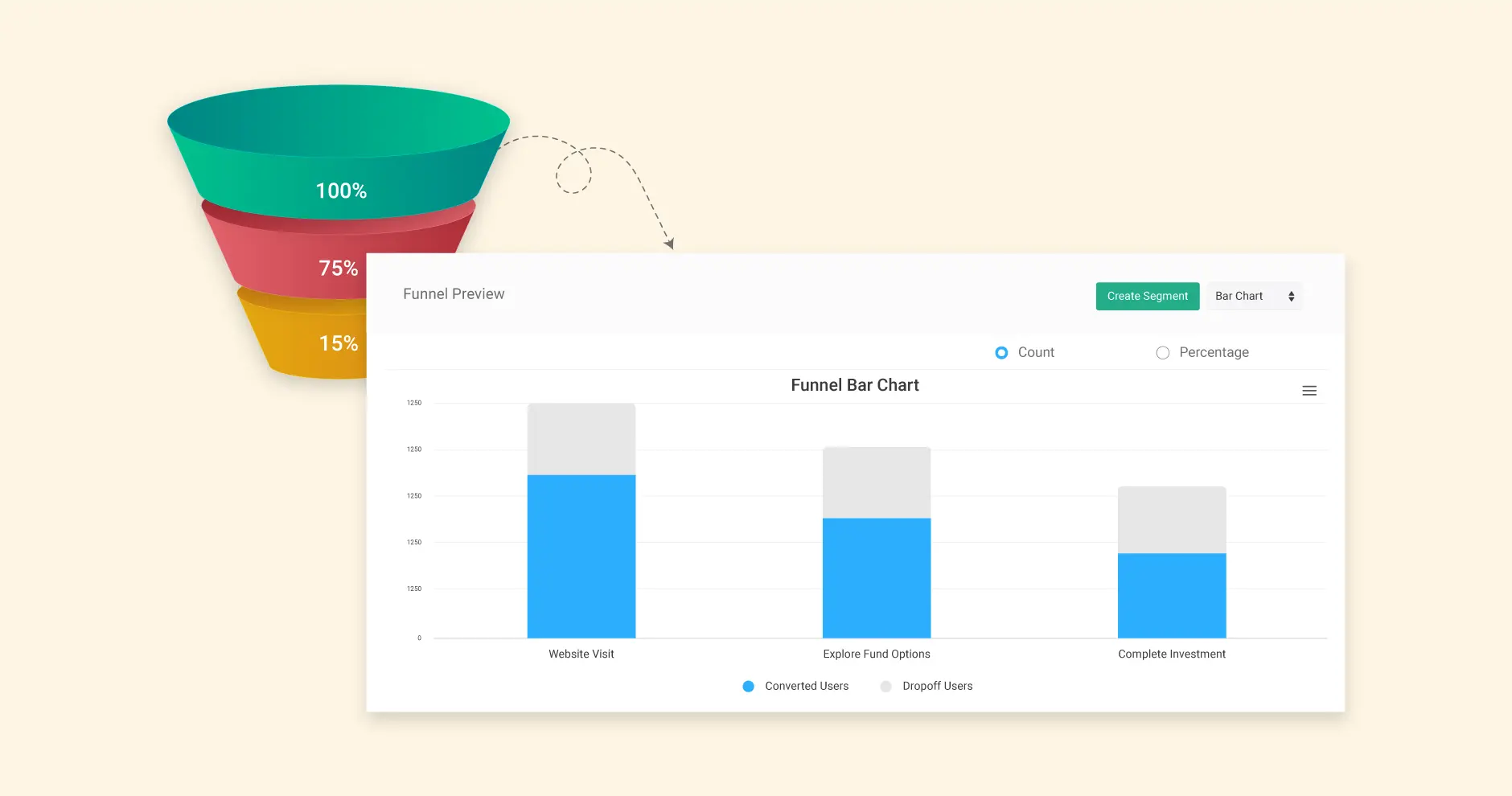 This new feature allows you to easily compare the number of users who either convert or drop off at each stage through bar charts. Presenting funnel data in a bar chart format gives you a quick and easy overview of performance across different stages, making it perfect for analysis and gaining actionable insights.