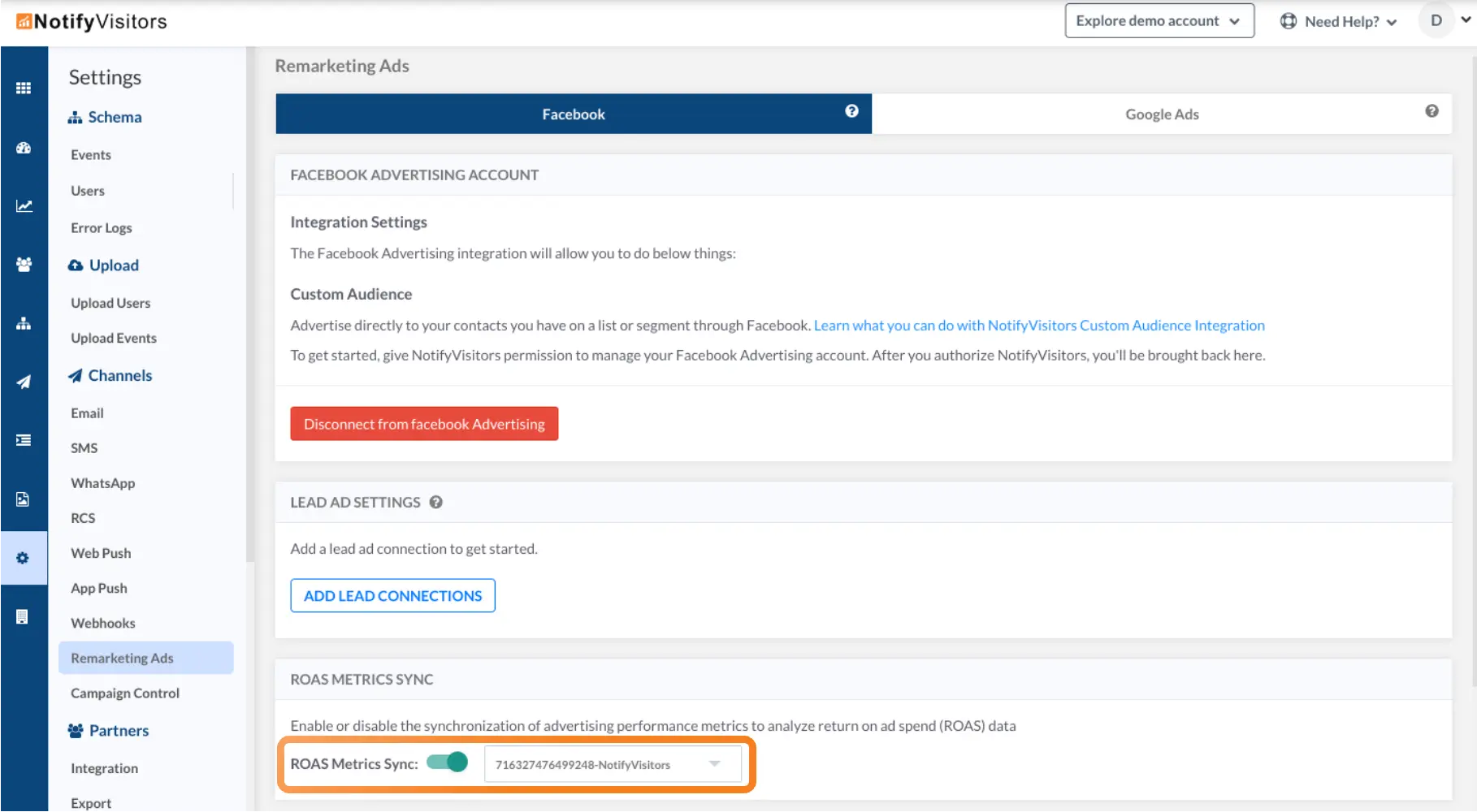 To get started, connect and sync your ad accounts via Settings > Remarketing Ads for real-time data syncing and ROAS tracking.