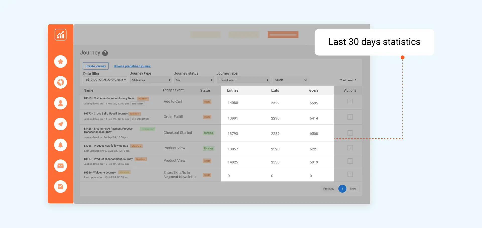 Updated Journey list stats from all time to the past 30 days